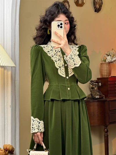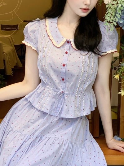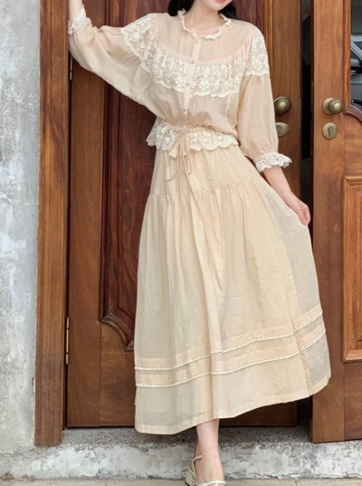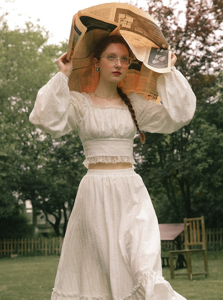 French Puffy Top & Long Skirt Set